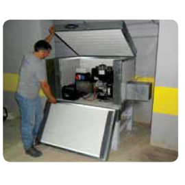 Ușile acustice pot fi instalate în orice parte a incintei. Poziția lor exactă este determinată conformă cu fiecare nevoie specifică, astfel încât întreținerea echipamentului este cel mai bine facilitată (de exemplu, accesul la filtrele de aer, baterii, etc ..). În plus, ferestrele pot fi plasate pentru inspecția periodică a mașinii.