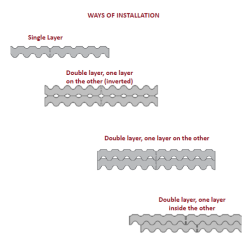 Vibro-Strip este utilizat în principal la baza mașinilor pentru a realiza controlul vibrațiilor. Acesta poate fi, de asemenea, utilizat ca un strat elastic între părțile structurale (stâlpi, pereți, poduri, rezervoare, etc.) pentru diminuarea forțelor structurale. Acesta poate fi tăiate ușor la orice dimensiune sau formă (de exemplu ca șaibe) în conformitate cu greutatea mașinii suportate. Acesta poate fi, de asemenea, ușor de tăiat în mijloc datorită formei sale speciale în formă de V. Banda are mai multe moduri de instalare în funcție de cantitatea de reducere a vibrațiilor necesare. De exemplu, poate fi utilizată într-un singur strat sau dublu pentru a crește grosimea şi deformarea maximă. Există multe combinații de aplicații care pot fi personalizate.